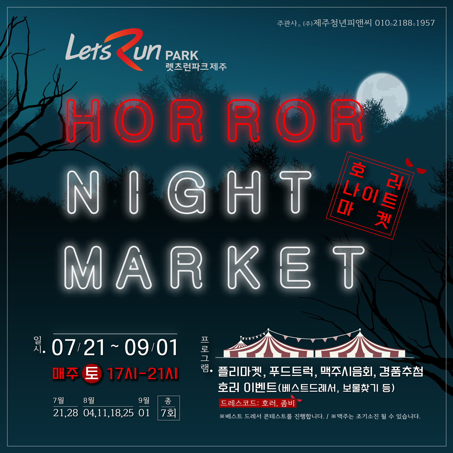 Çѱ¹¸¶»çȸ(ȸÀå ±è³«¼ø) ·¿Ã÷·±ÆÄÅ© Á¦ÁÖ¿¡¼ ¿À´Â 9¿ù 1ÀÏ(Åä)±îÁö ¸ÅÁÖ Åä¿äÀÏ ¿ÀÈÄ 5½ÃºÎÅÍ 9½Ã±îÁö Á¦ÁÖ ¾ß½ÃÀå ‘È£·¯ ³ªÀÌÆ® ¸¶ÄÏ’À» °³ÃÖÇÑ´Ù. ¾ß°£°æ¸¶ ½ÃÁðÀ» ¸Â¾Æ ÇÁ¸®¸¶ÄÏ¿¡ °øÆ÷ Å׸¶¸¦ ´õÇÑ Çà»ç·Î ¿©¸§¹ã ÀÌ»ö Áñ±æ °Å¸®¸¦ Á¦°øÇÑ´Ù.