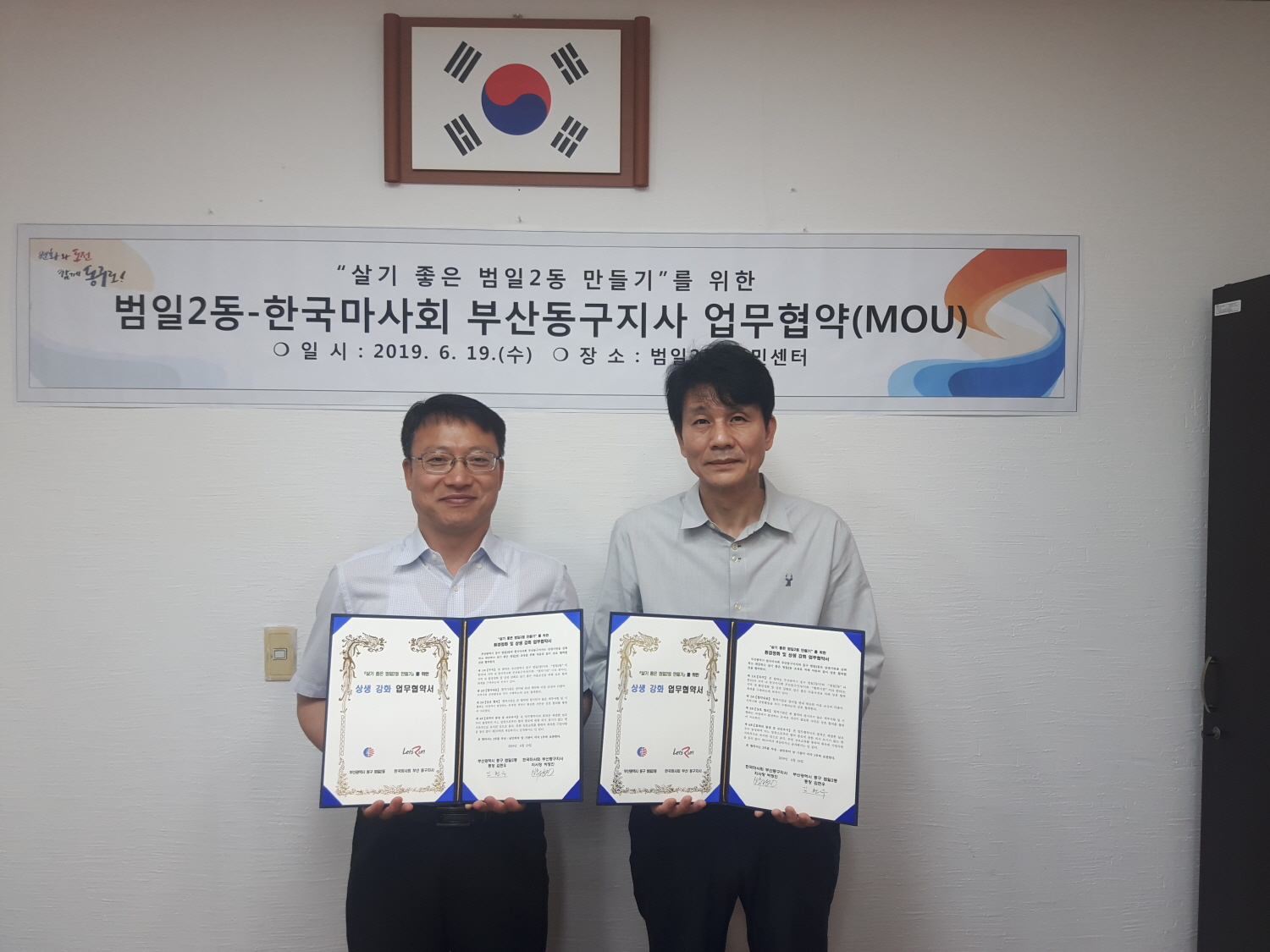 Çѱ¹¸¶»çȸ ºÎ»êµ¿±¸Áö»ç(Áö»çÀå ¹ÚÁ¤Áø)´Â Áö³ 19ÀÏ(¼ö) ºÎ»ê±¤¿ª½Ã µ¿±¸ ¹ýÀÏ2µ¿(µ¿Àå ±èÇö¿ì)°ú “ȯ°æÁ¤È ¹× »ó»ý°È ¾÷¹«Çù¾à(MOU)”À» ü°áÇß´Ù°í ¹àÇû´Ù.