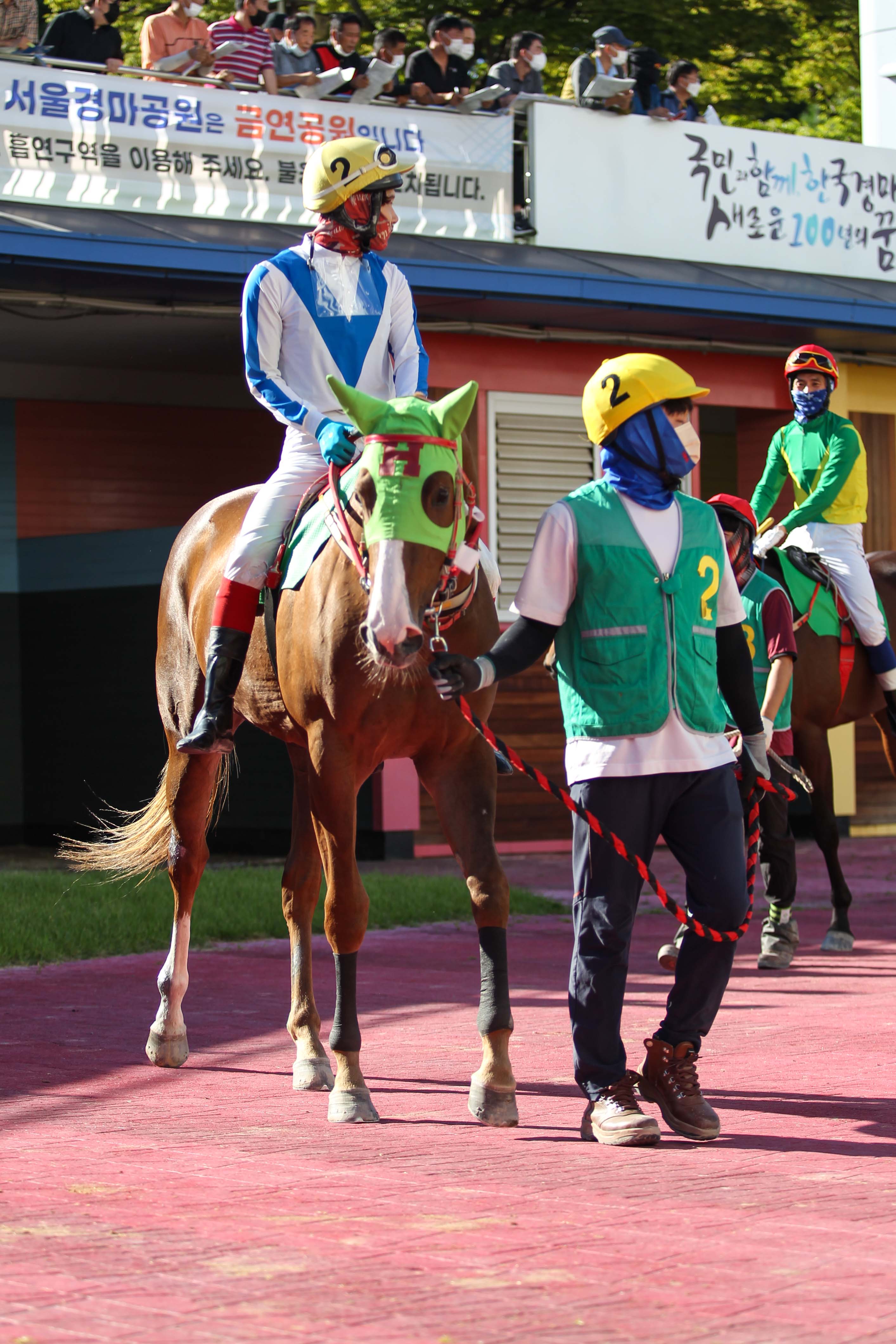 Áö³ 8¿ù 28ÀÏ °³ÃÖµÈ 2¼¼¸¶ Ưº°°æÁÖ ¡®Rookie Stakes@ºÎ»ê¡¯ÀÇ ¿ì½Â¸¶. ºÎ¸¶´Â ¡®Rookie Stakes@¼¿ï¡¯ ¿ì½Â¸¶ÀÎ ¡®ÀÚÀÌ¾ðÆ®ÆÝÄ¡¡¯¿Í °°Àº ¡®ÄáÄÚµåÆ÷ÀÎÆ®¡¯´Ù. ¸ð°è¿¡µµ ¡®½ºÅèĹ¡¯ÀÇ Çǰ¡ È帣´Â ´öºÐ¿¡ ÀÛ³â 10¿ù Çѱ¹°æÁÖ¸¶»ý»êÀÚÇùȸ °æ¸Å¿¡¼ ÃÖ°í°¡ÀÎ 1¾ï 5õ 7¹é¸¸ ¿ø¿¡ ³«ÂûµÇ¾ú´Ù. ÃâÀüÇÑ 3¹øÀÇ °æÁÖ Áß 2¹øÀ» ¡®¿ÍÀ̾îÅõ¿ÍÀ̾î(Wire to Wire)¡¯ ¿ì½ÂÀ» Â÷ÁöÇÏ¸é¼ ´É·ÂÀ» Áõ¸íÇϰí ÀÖ´Ù. 515kg ÀüÈÄ·Î 2¼¼¸¶ÀÓ¿¡µµ ü±¸°¡ »ó´çÈ÷ ÁÁÀº ÆíÀÌ´Ù.