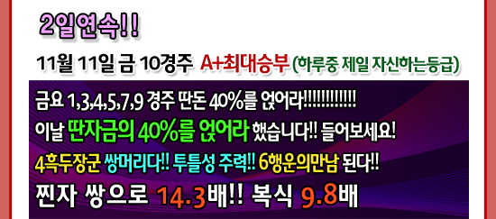 11¿ù 11ÀÏ ±Ý 10°æÁÖ A+ÃÖ´ë½ÂºÎ (ÇÏ·çÁß Á¦ÀÏ ÀÚ½ÅÇϴµî±Þ))(ÇÏÇâÁ¶Á¤)